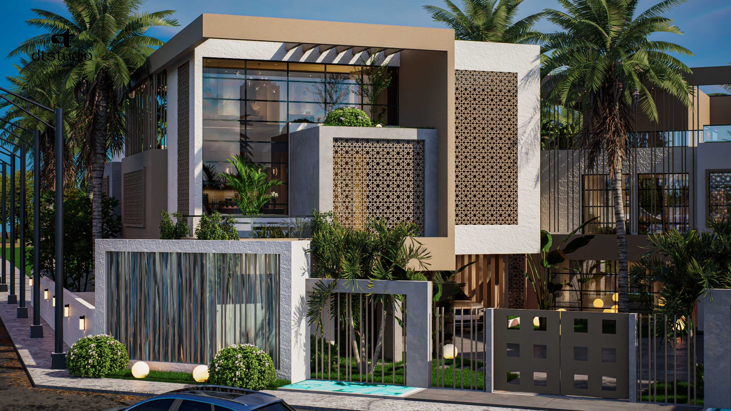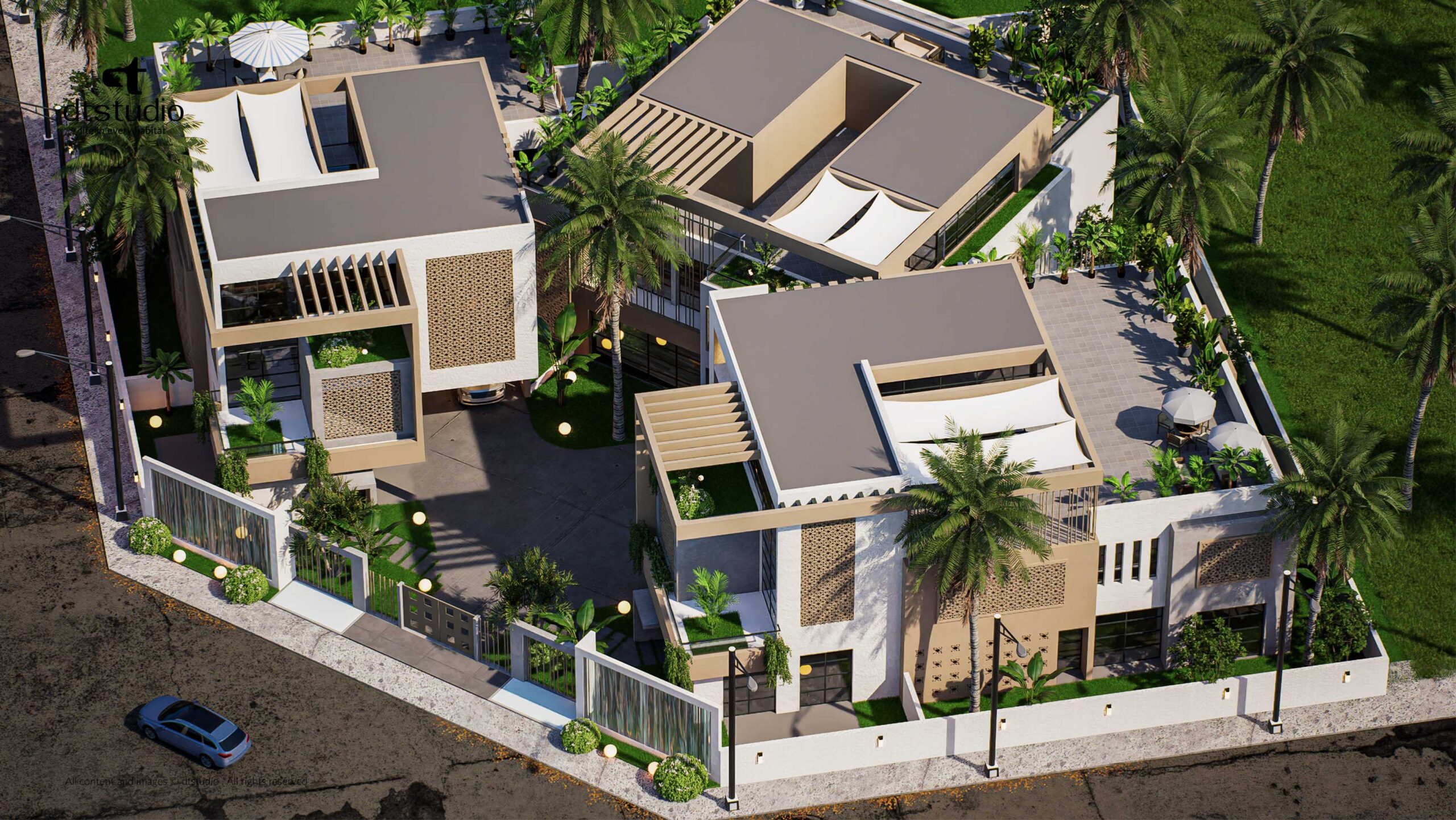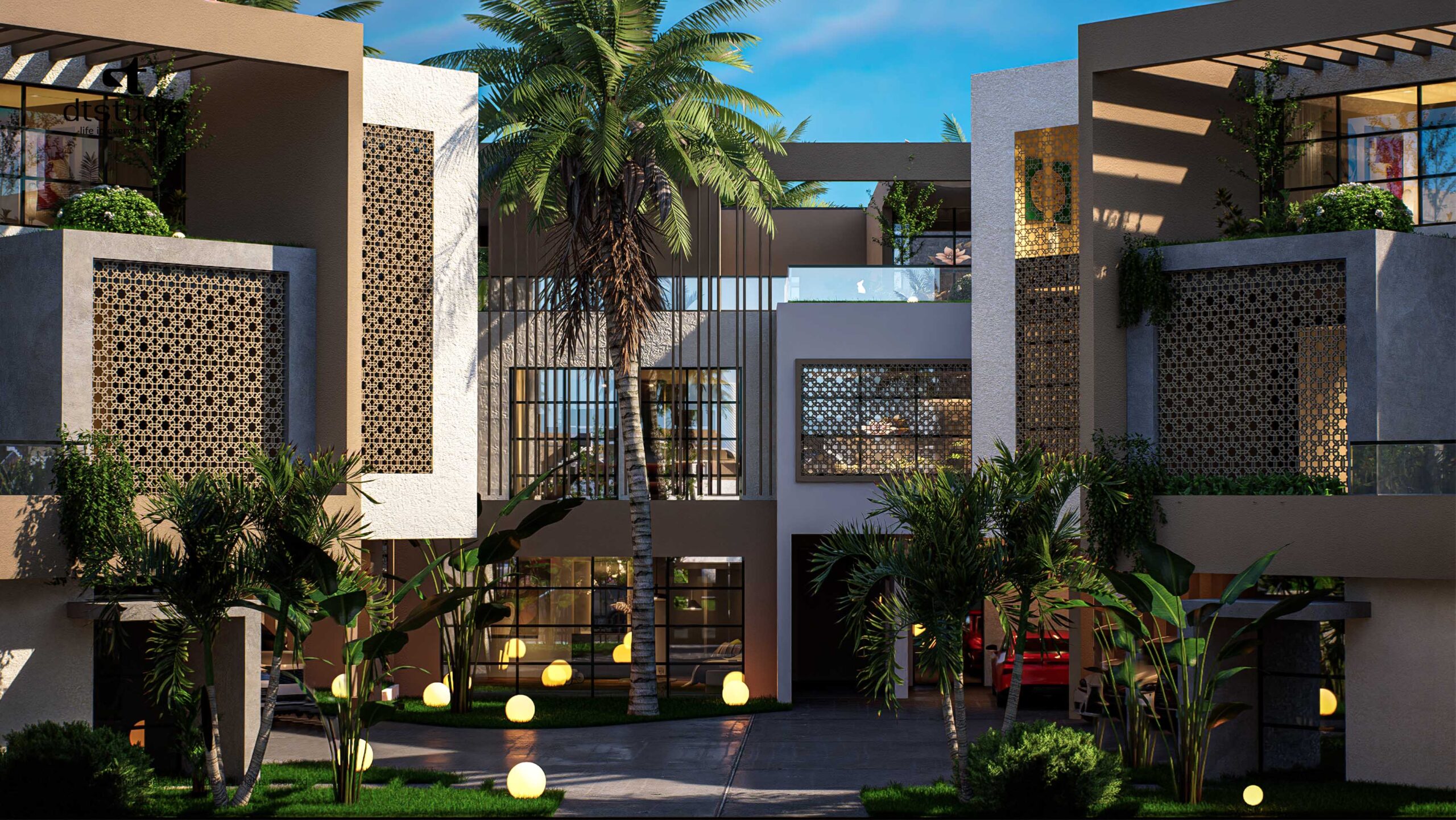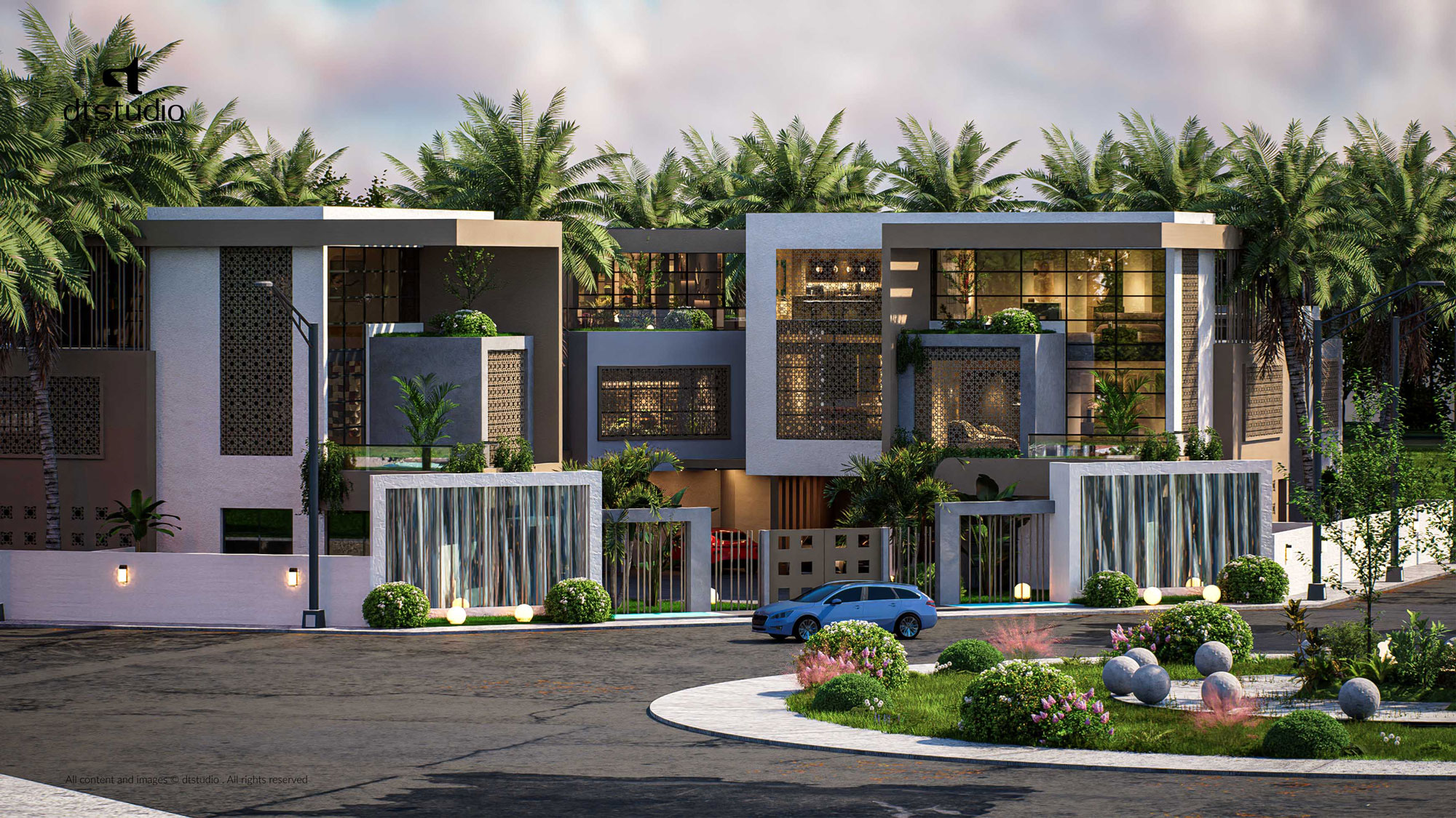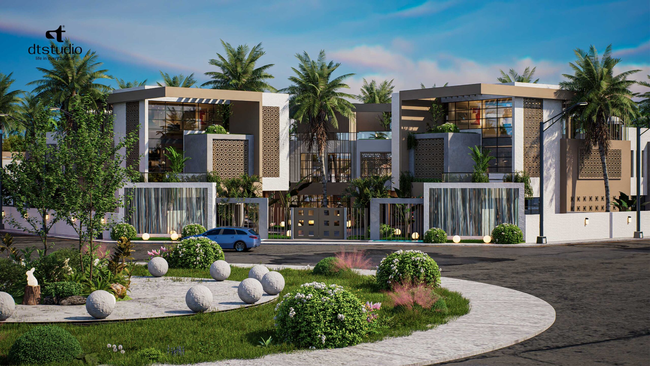 Furthermore, we selected a color palette that reflects the surrounding environment, using deep earth and sand tones. This strategic choice ensures the modern villas feel warm and cohesive, establishing a strong visual connection to the local landscape.