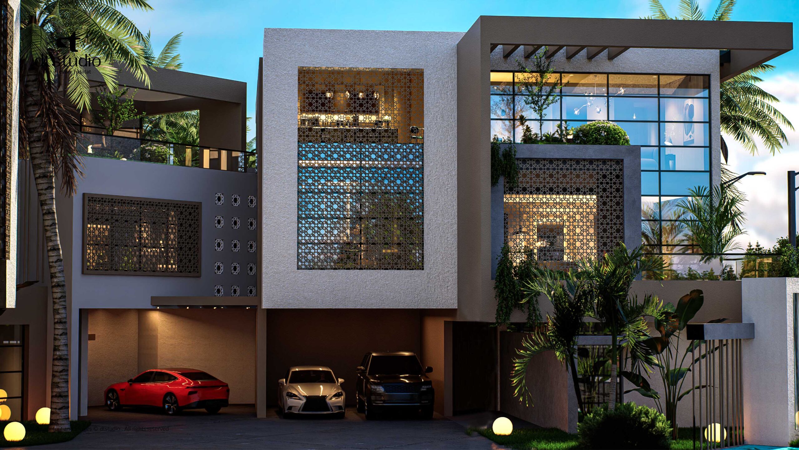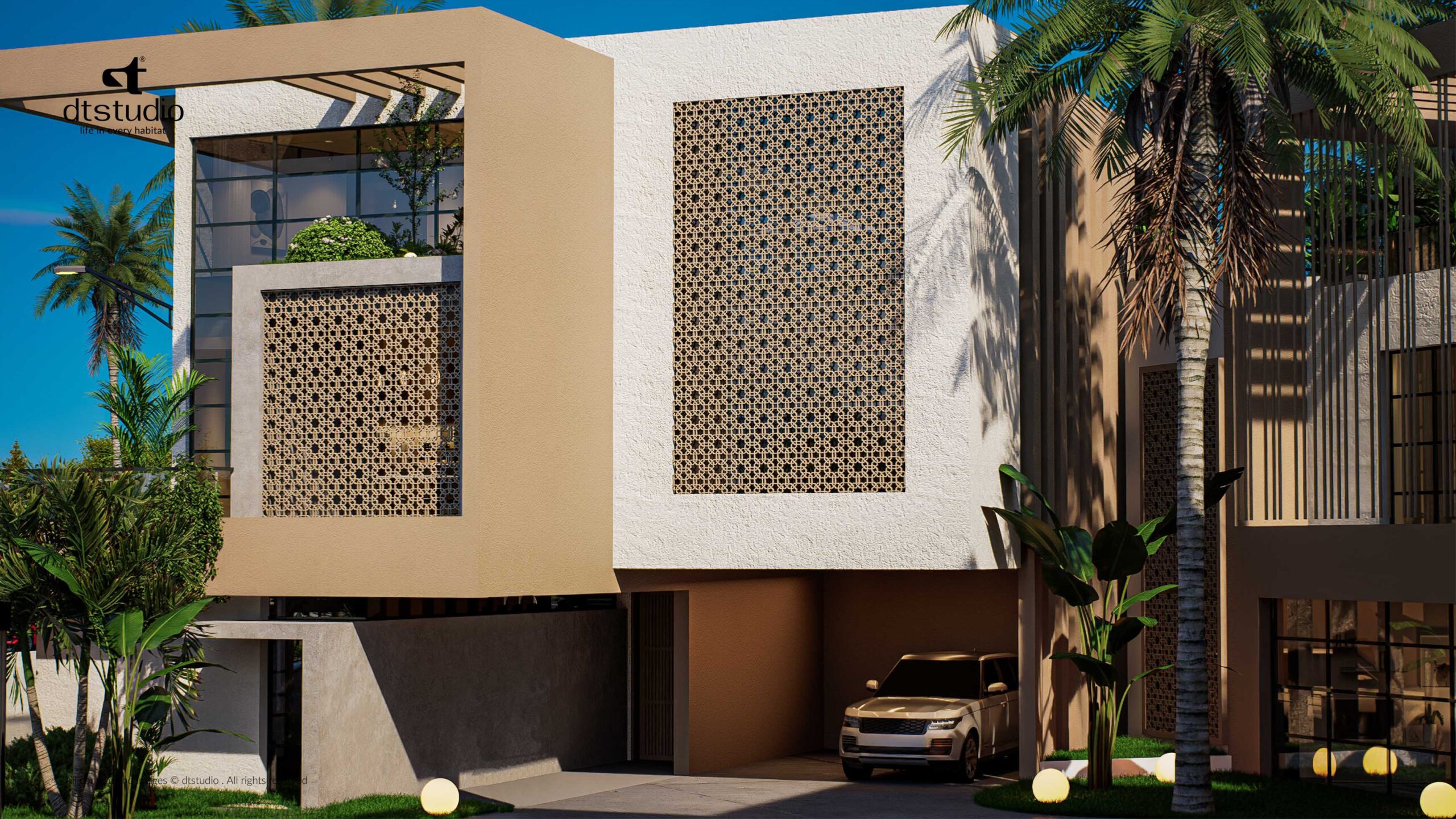 The client requested a modern aesthetic infused with an exotic, Oriental touch. We achieved this fusion primarily by incorporating Mashrabiya woodwork.