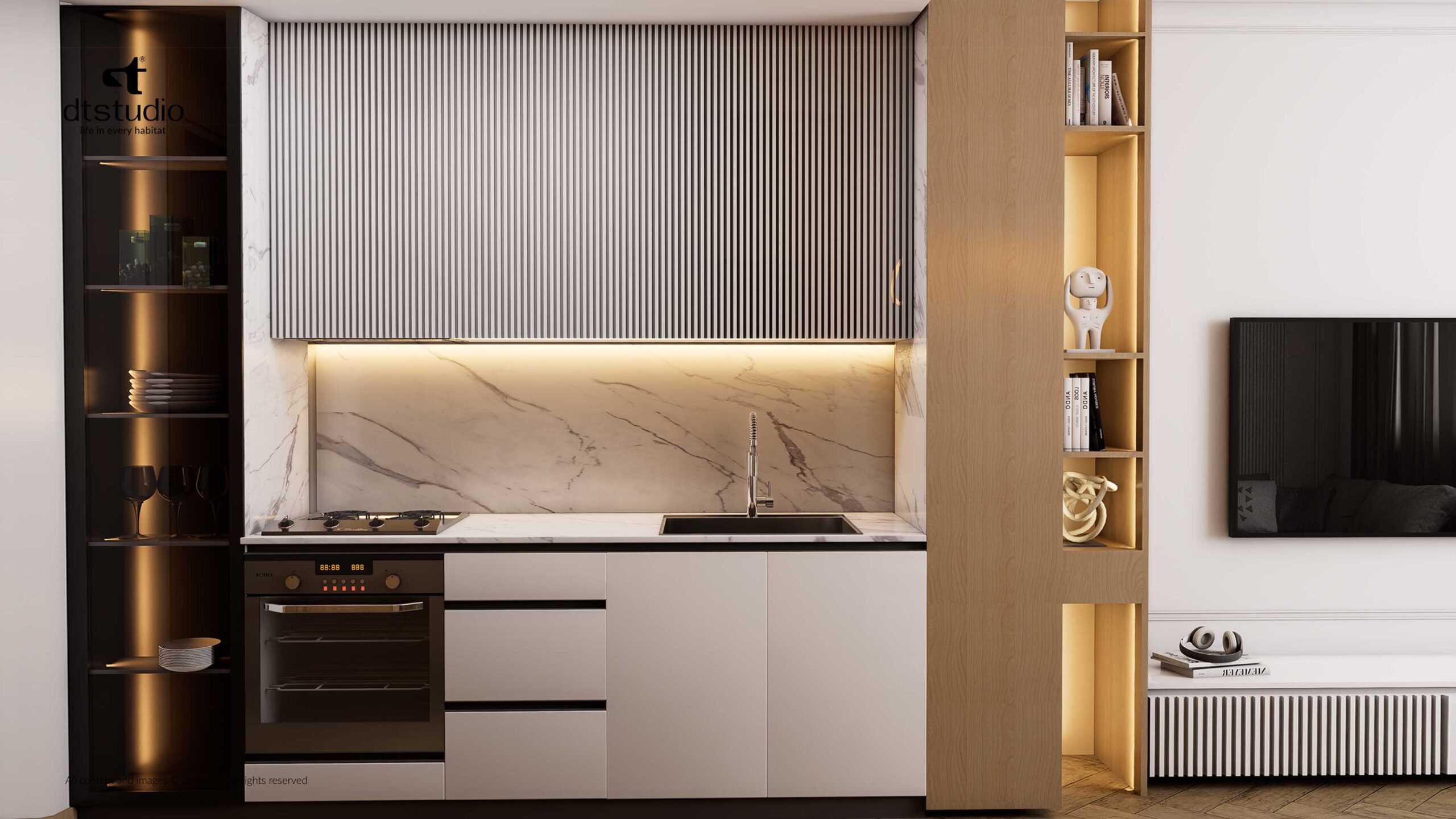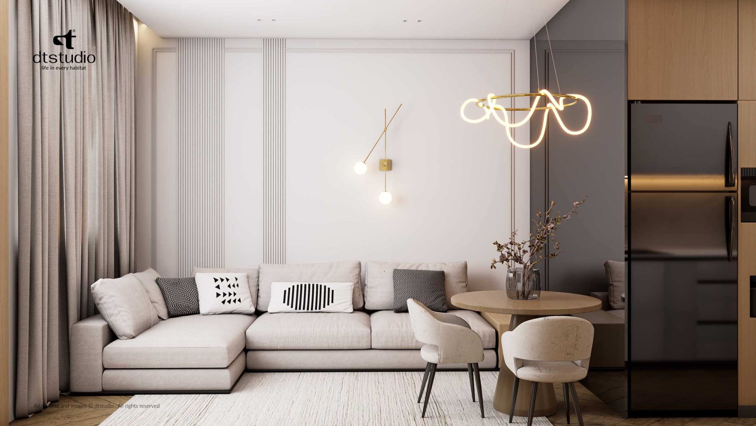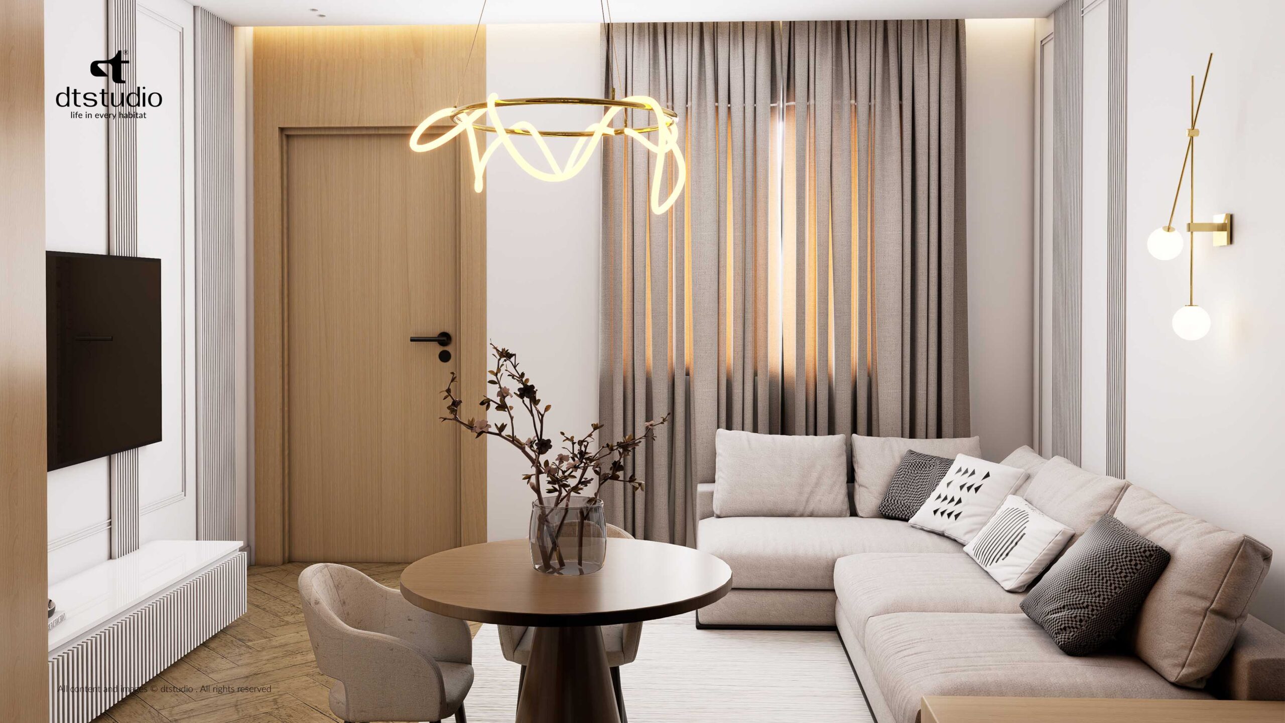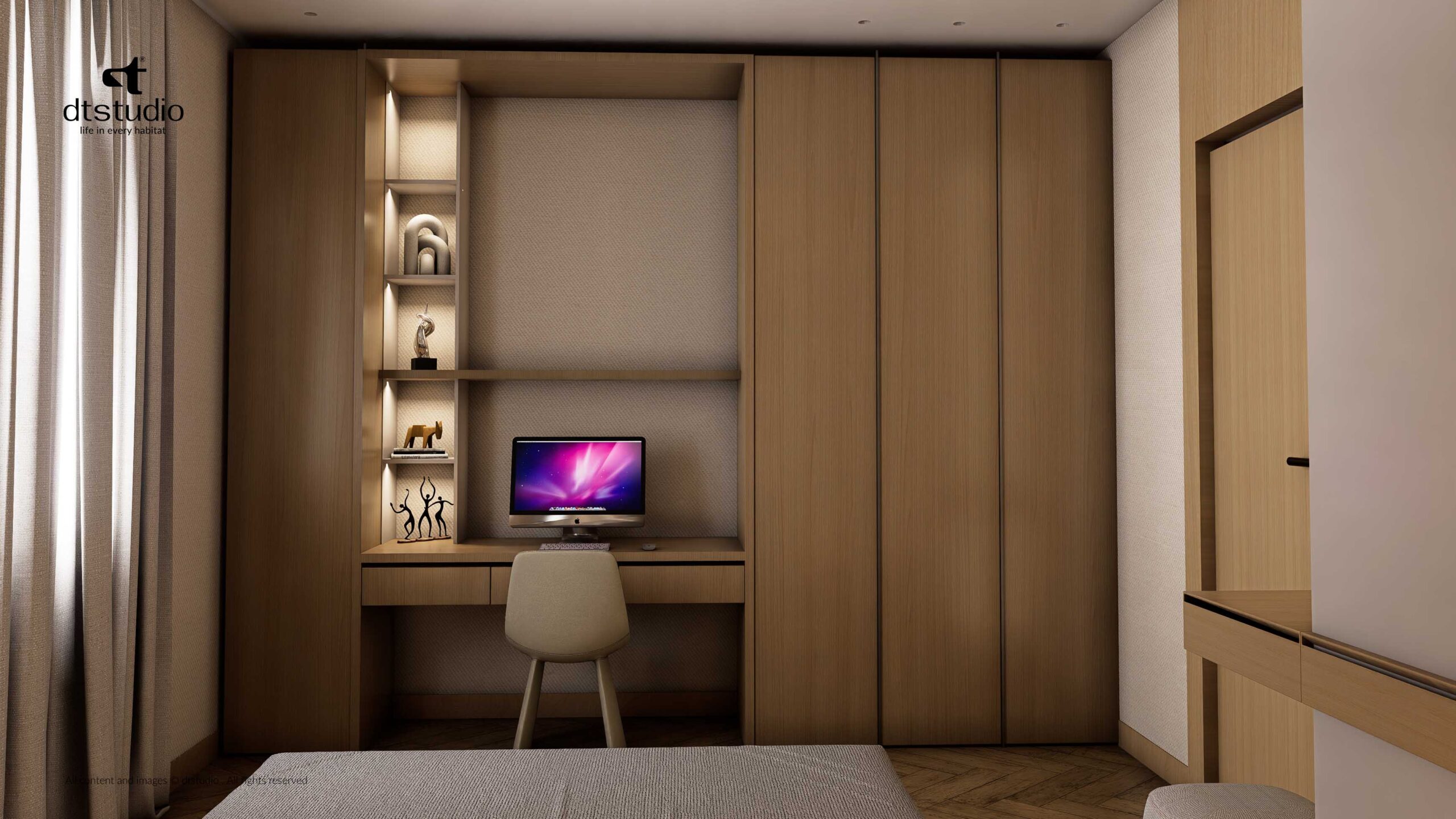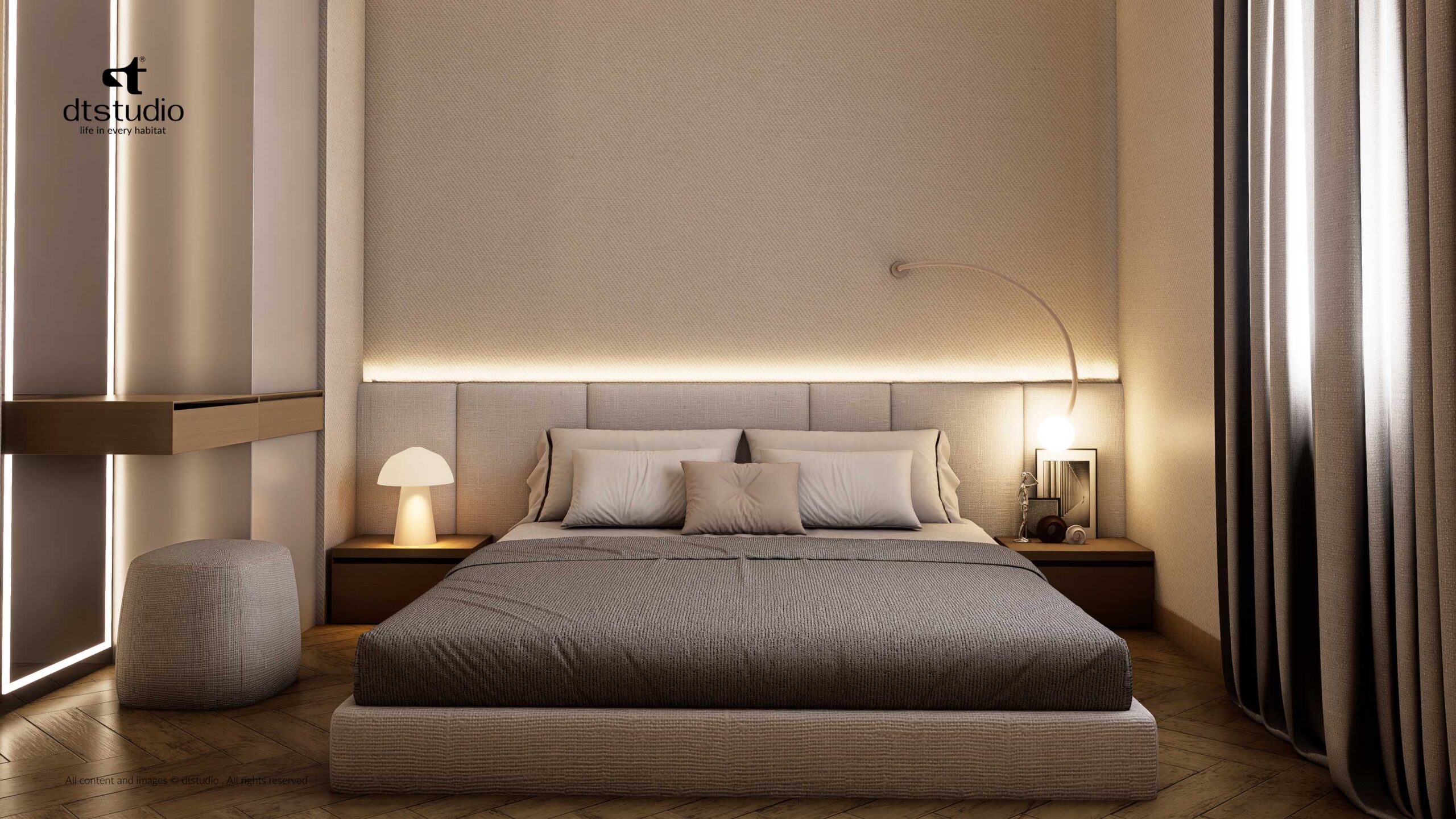 The design focus was simple, we created a perfect zone where comfort is always the priority. We achieved this by using palette of light colors and selecting high-quality, premium materials throughout the space.