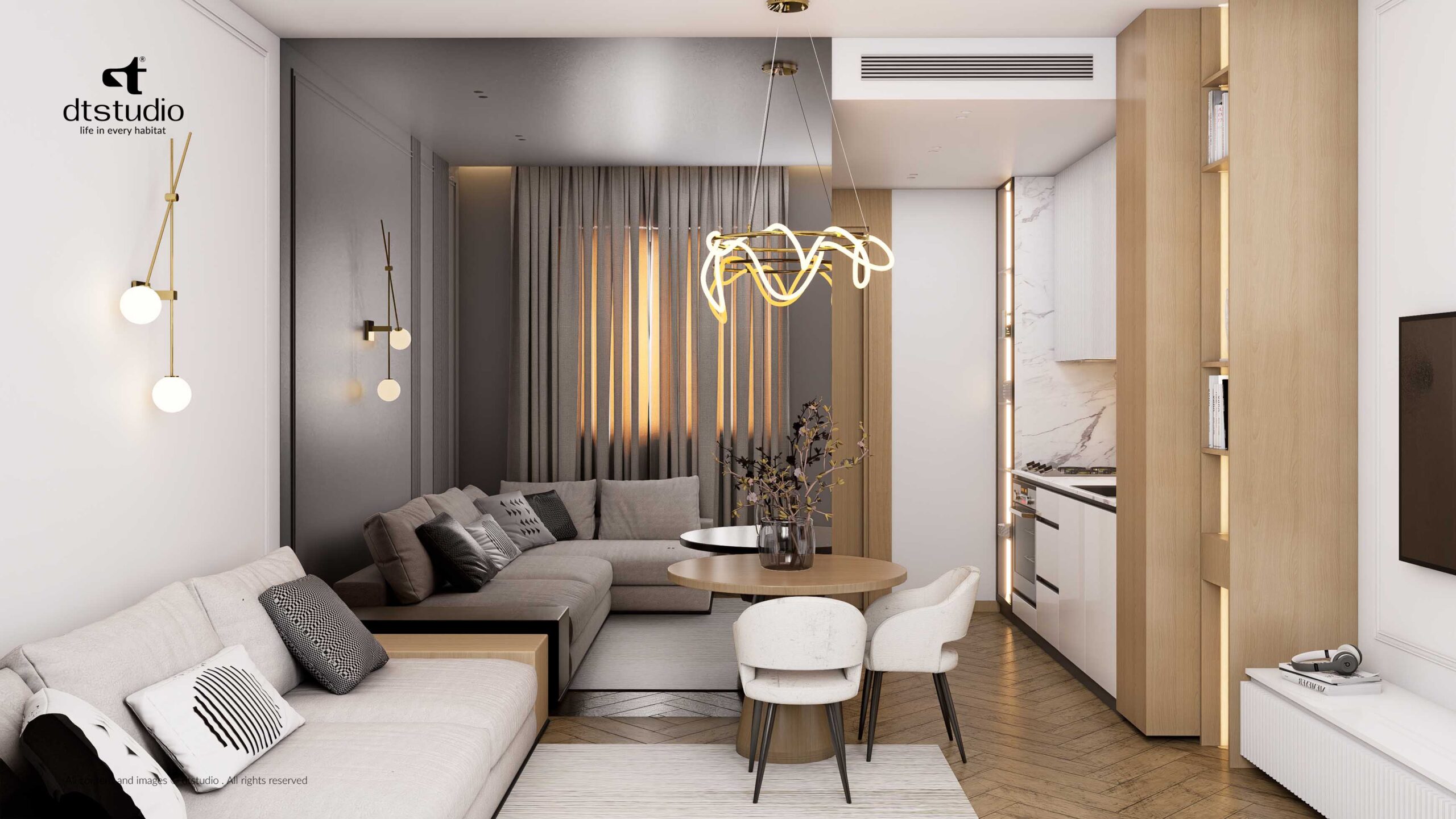 Every square meter was planned with care to ensure maximum function without losing that essential feeling of luxury. This studio is a calm, comfortable retreat, ready for modern life.